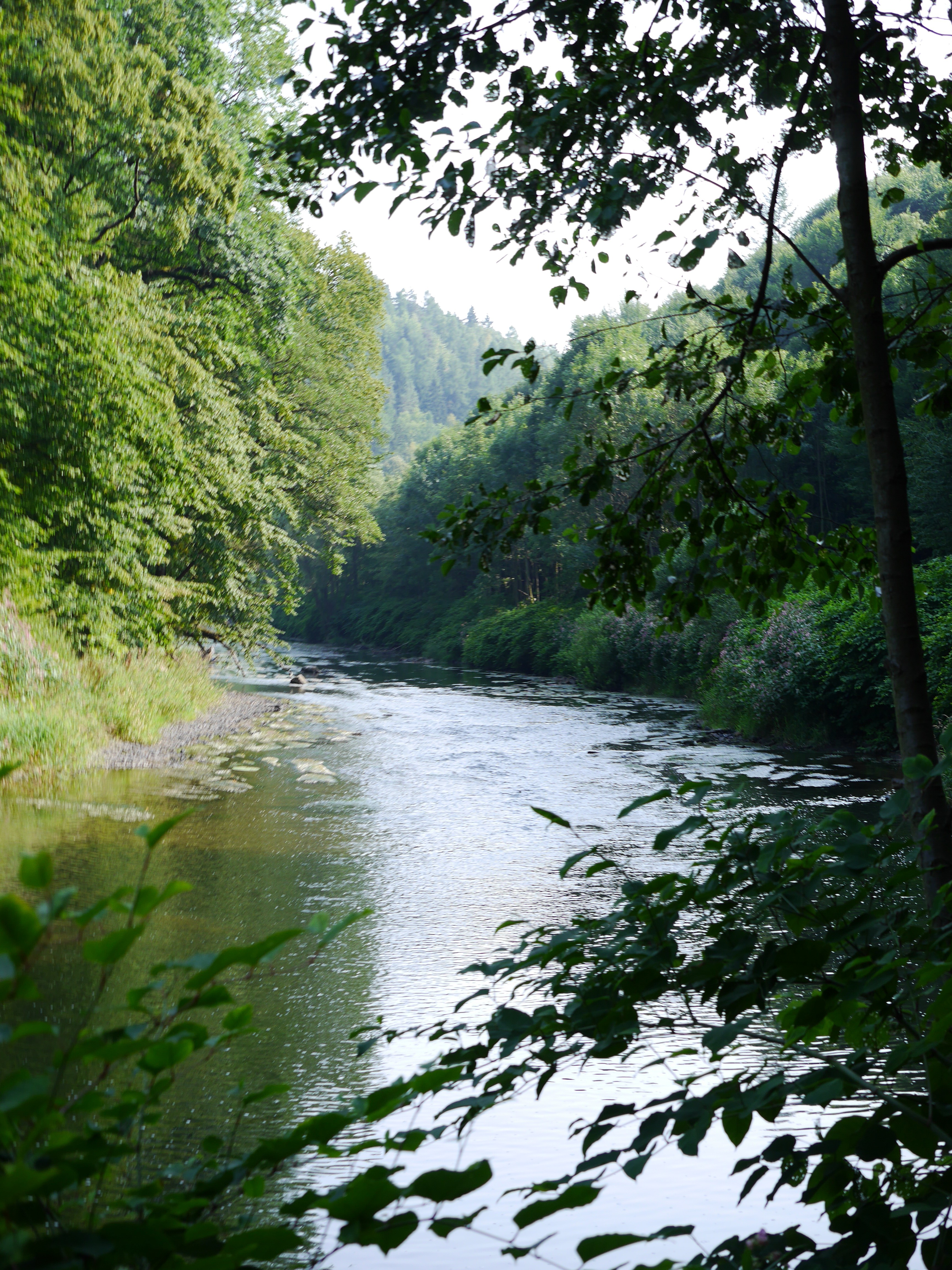 Danach ging es auf einem glatten asphaltierten Fahrradweg durch den schattigen Wald die Neiße entlang 😀