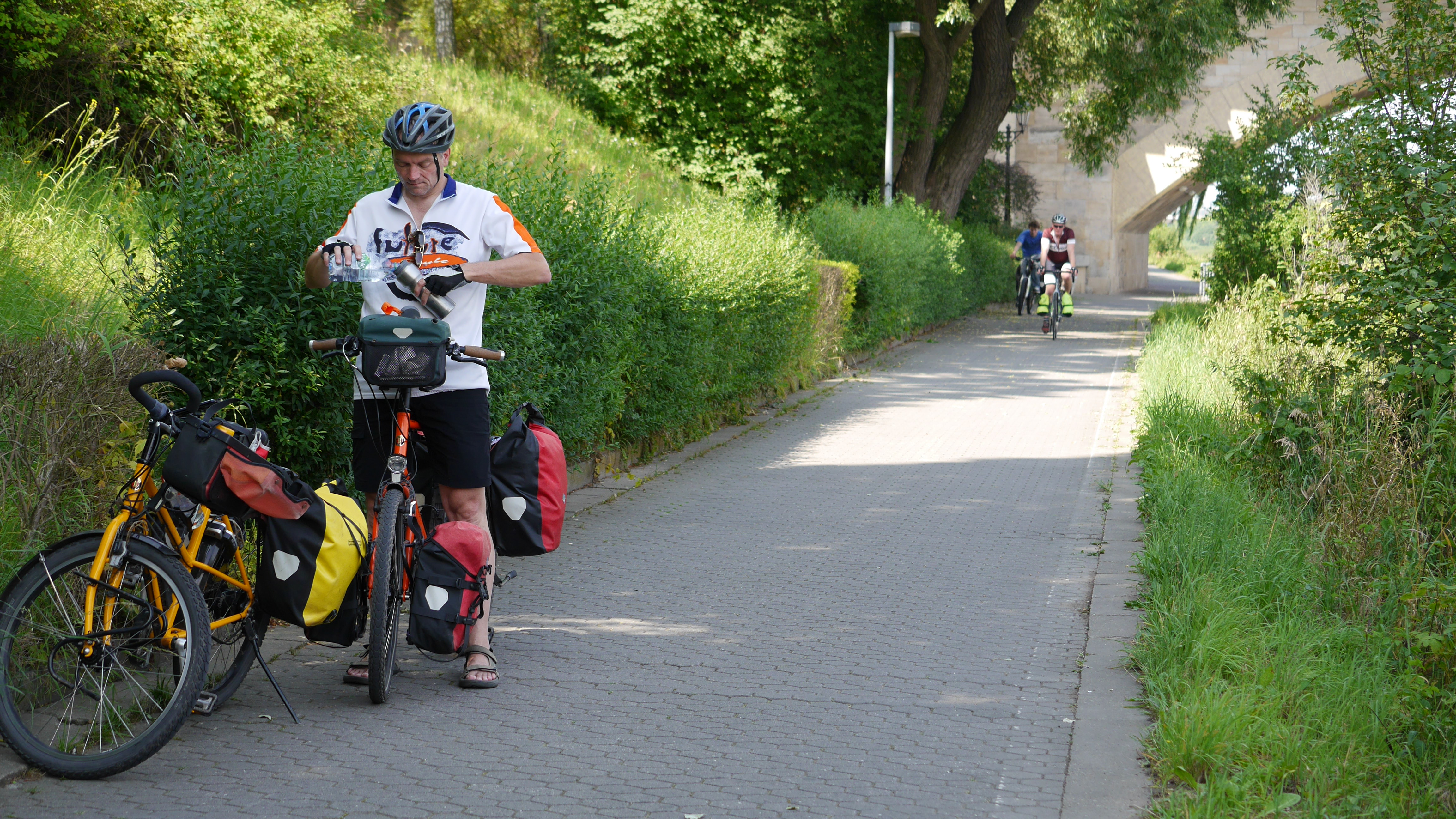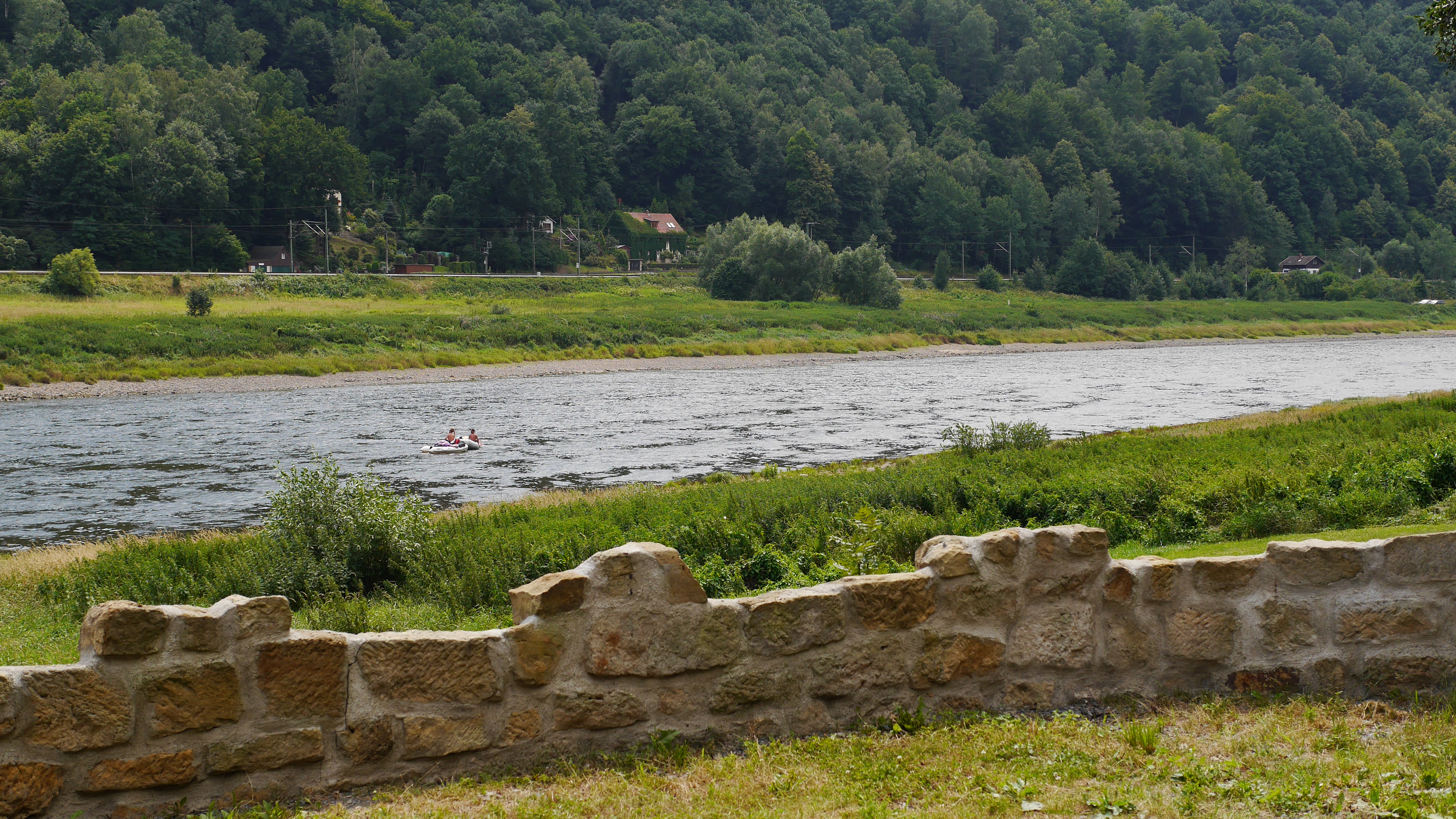 Immer wieder Bäume, die angenehmen Schatten spenden. Schöne Häuser mit Gärten. In Wehlen wurde die Elbe nach der Überflutung 2012 zur Radfahrer-Kirche.