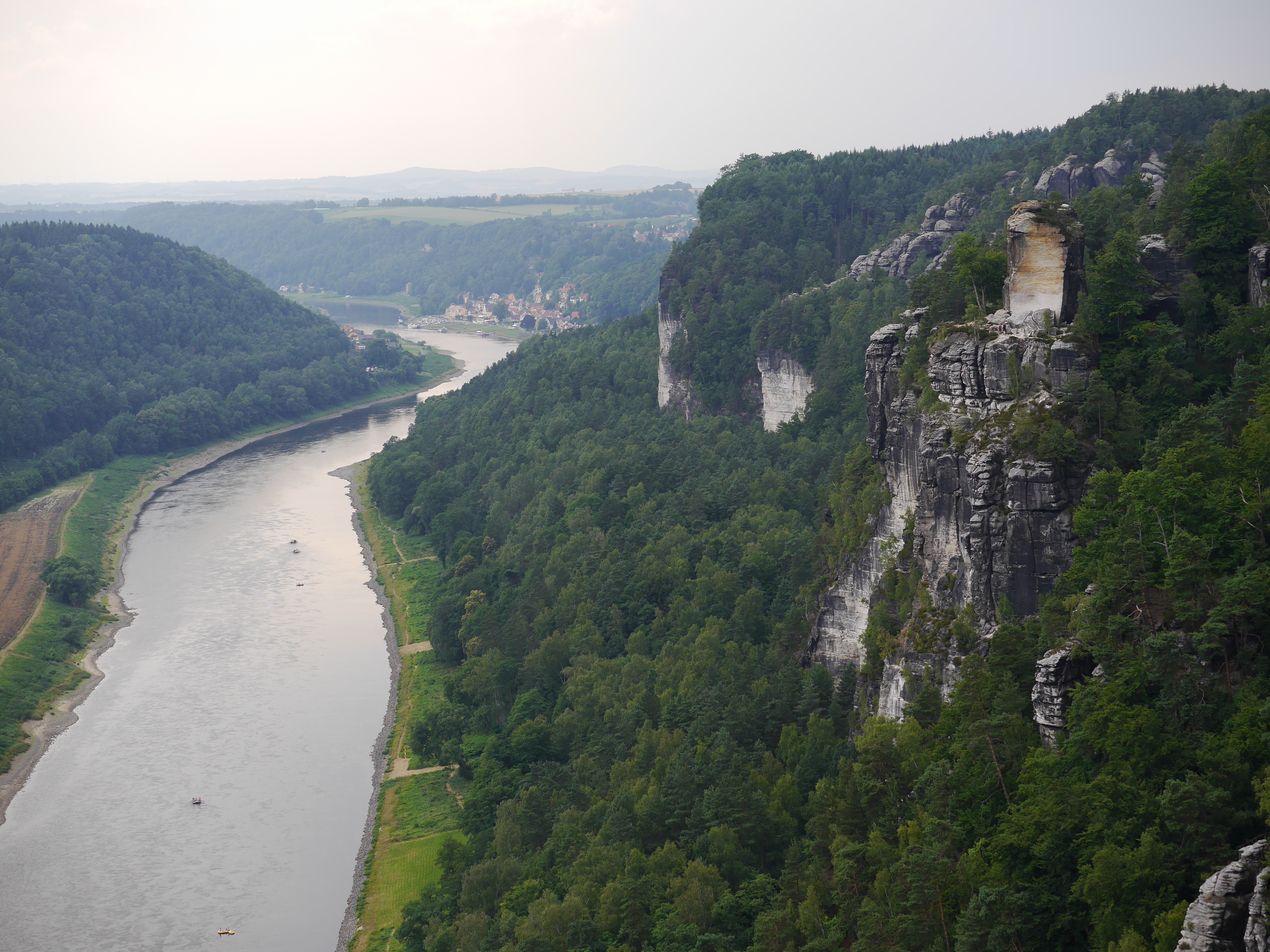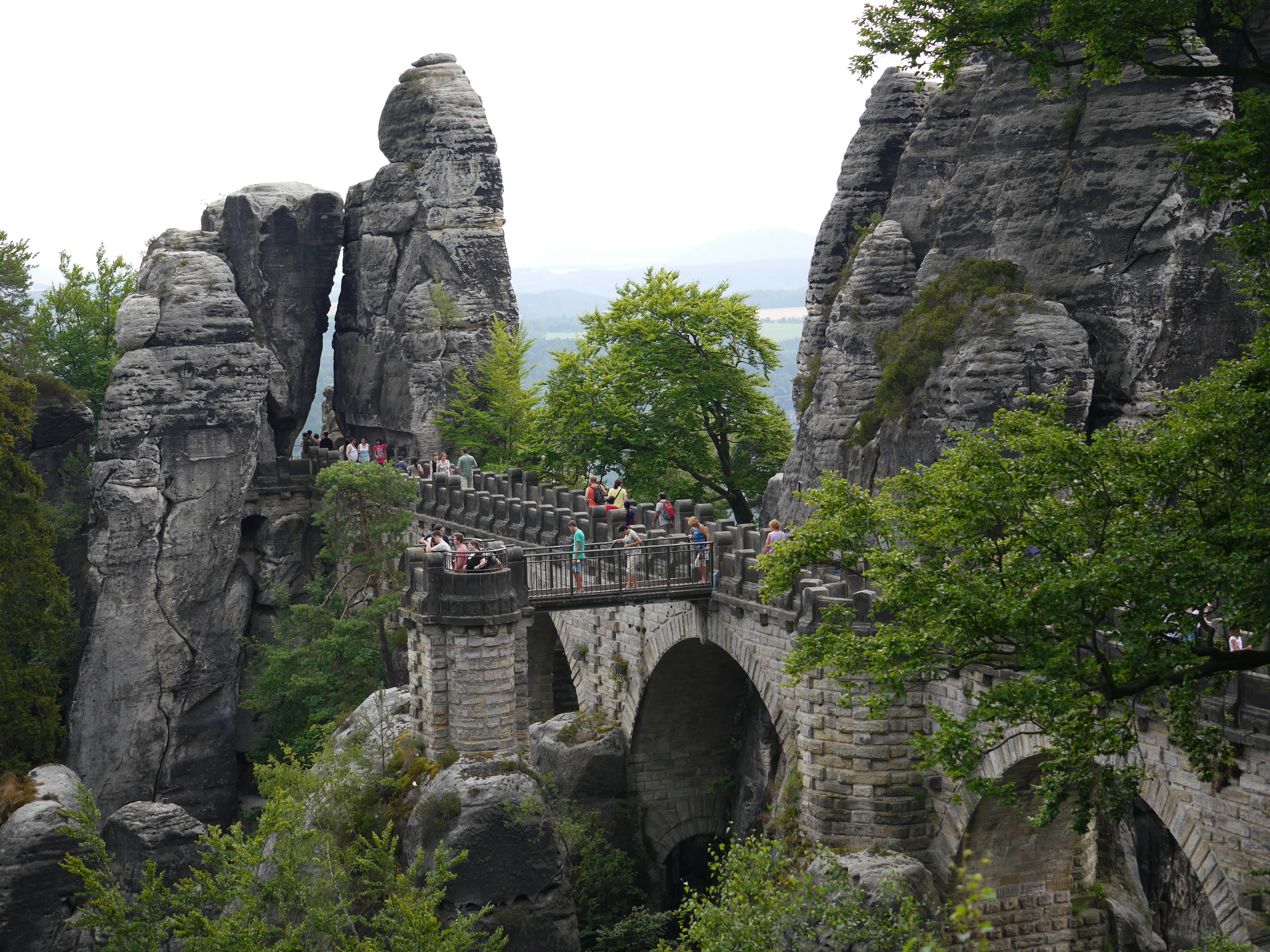 Ohne Gepäck geht es dann nochmal zurück. Die Bastei können wir uns nicht entgehen lassen. Fantastisch. Oben angekommen gönnen wir uns ein super leckeres Essen im Panorama Restaurant. Jedes Wochenende gibt es hier gleich mehrere Hochzeitsessen.