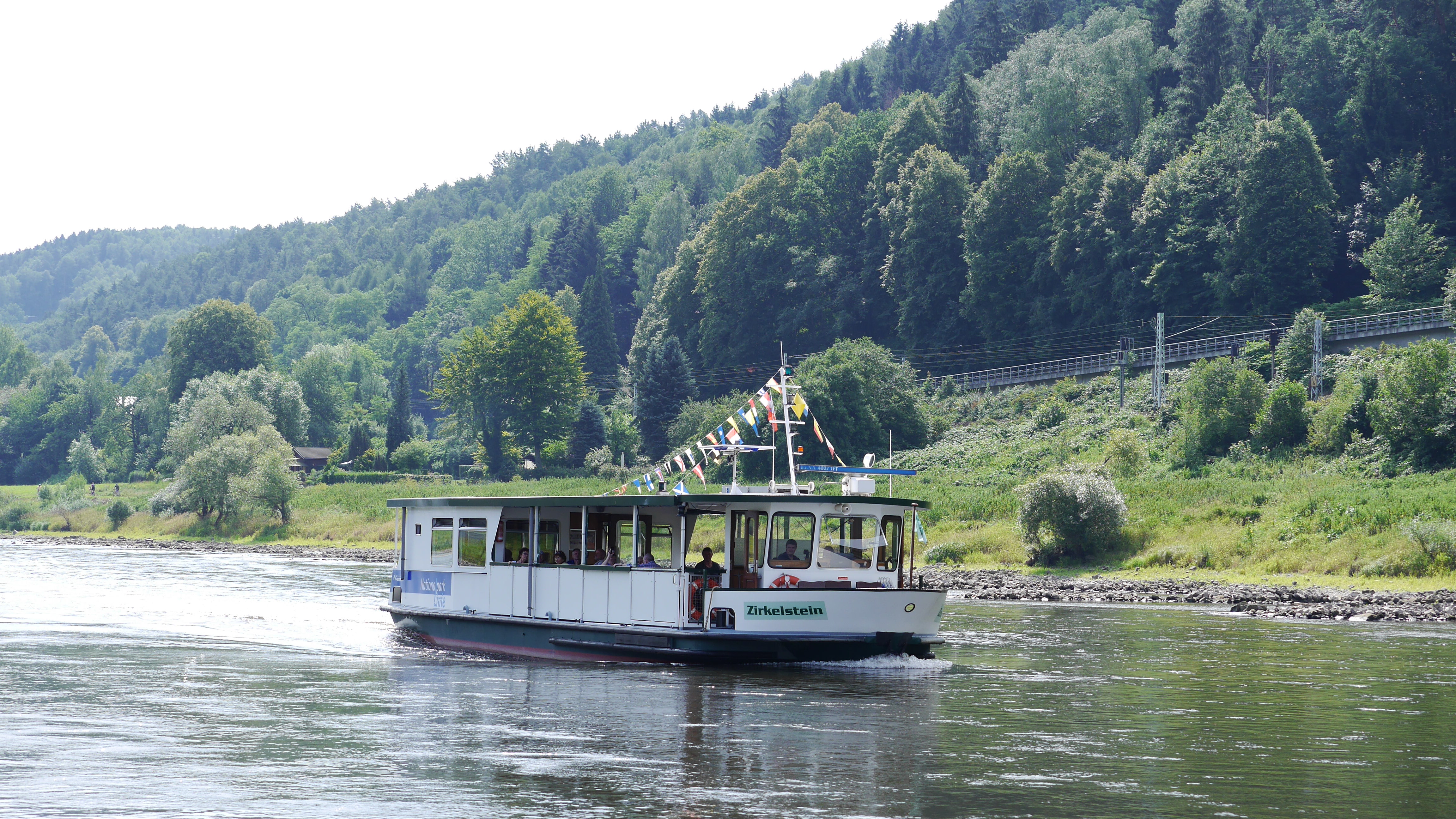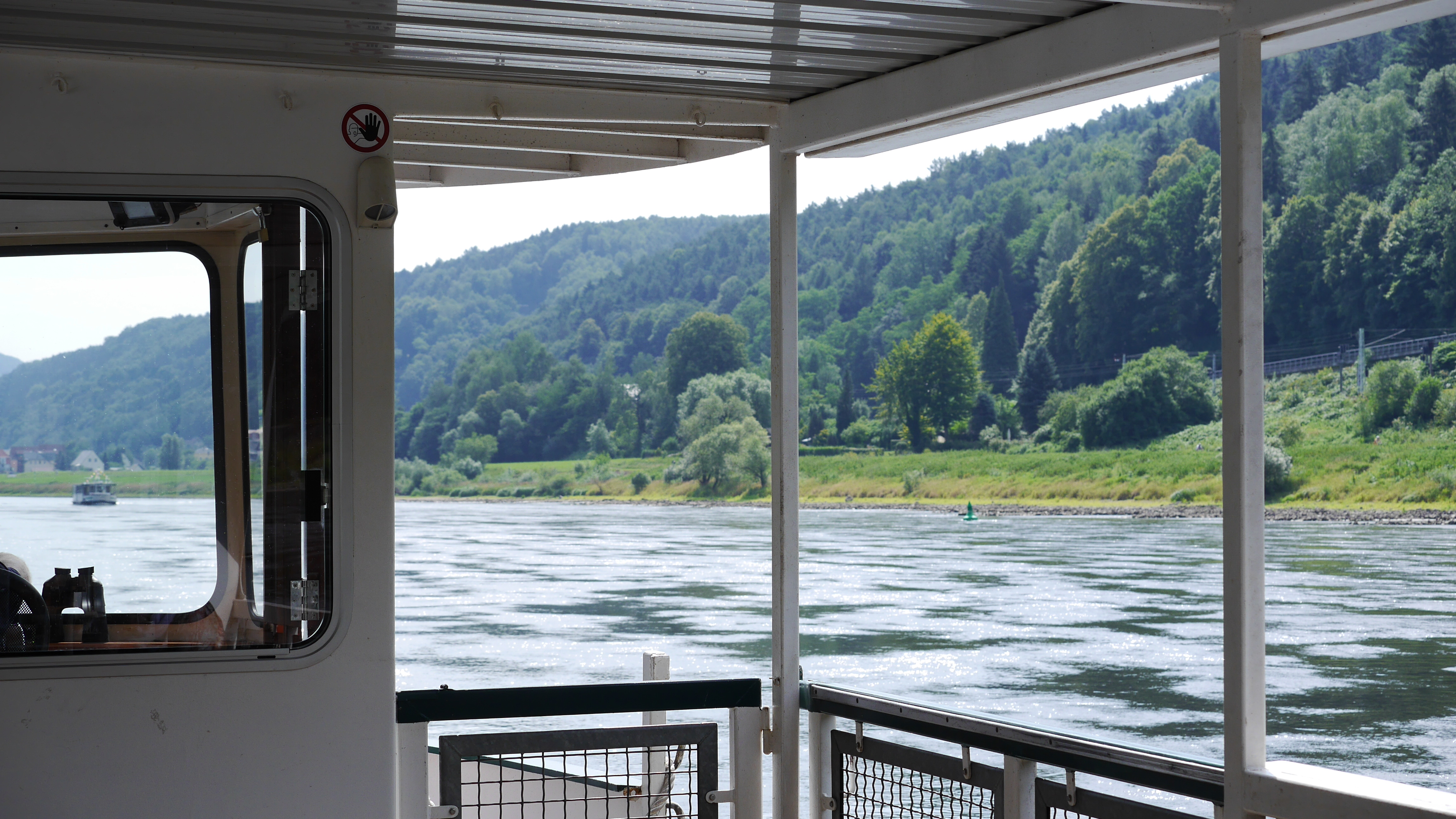 Unten angekommen ist es bis Bad Schandau nicht mehr weit. Geld und Wasser auftanken,dann geht es weiter. Wir haben Glück mit der Fähre. Sie will gerade als wir ankommen los, der Käptain ist äußerst freundlich. Wir setzen nach Krippen über.