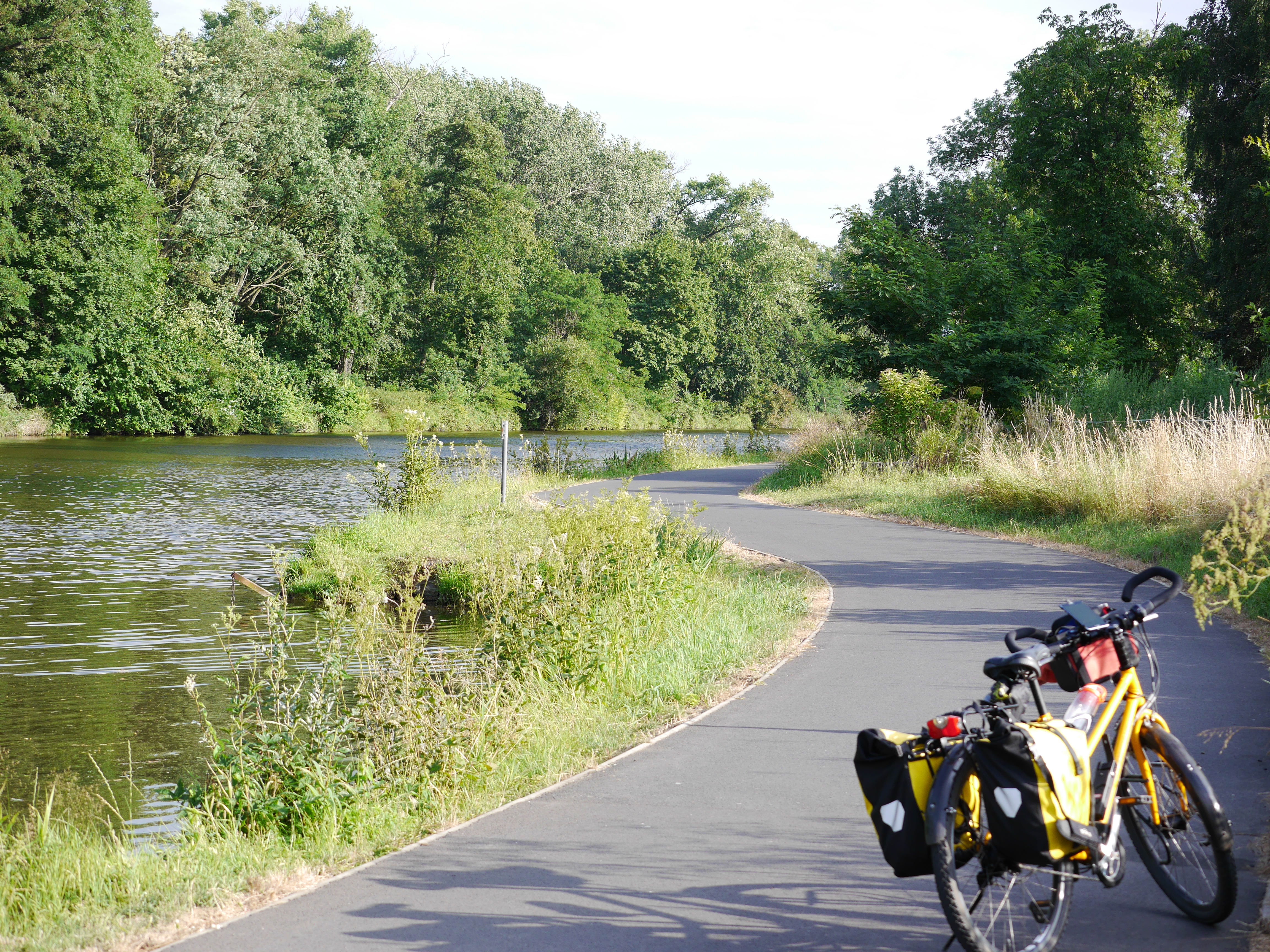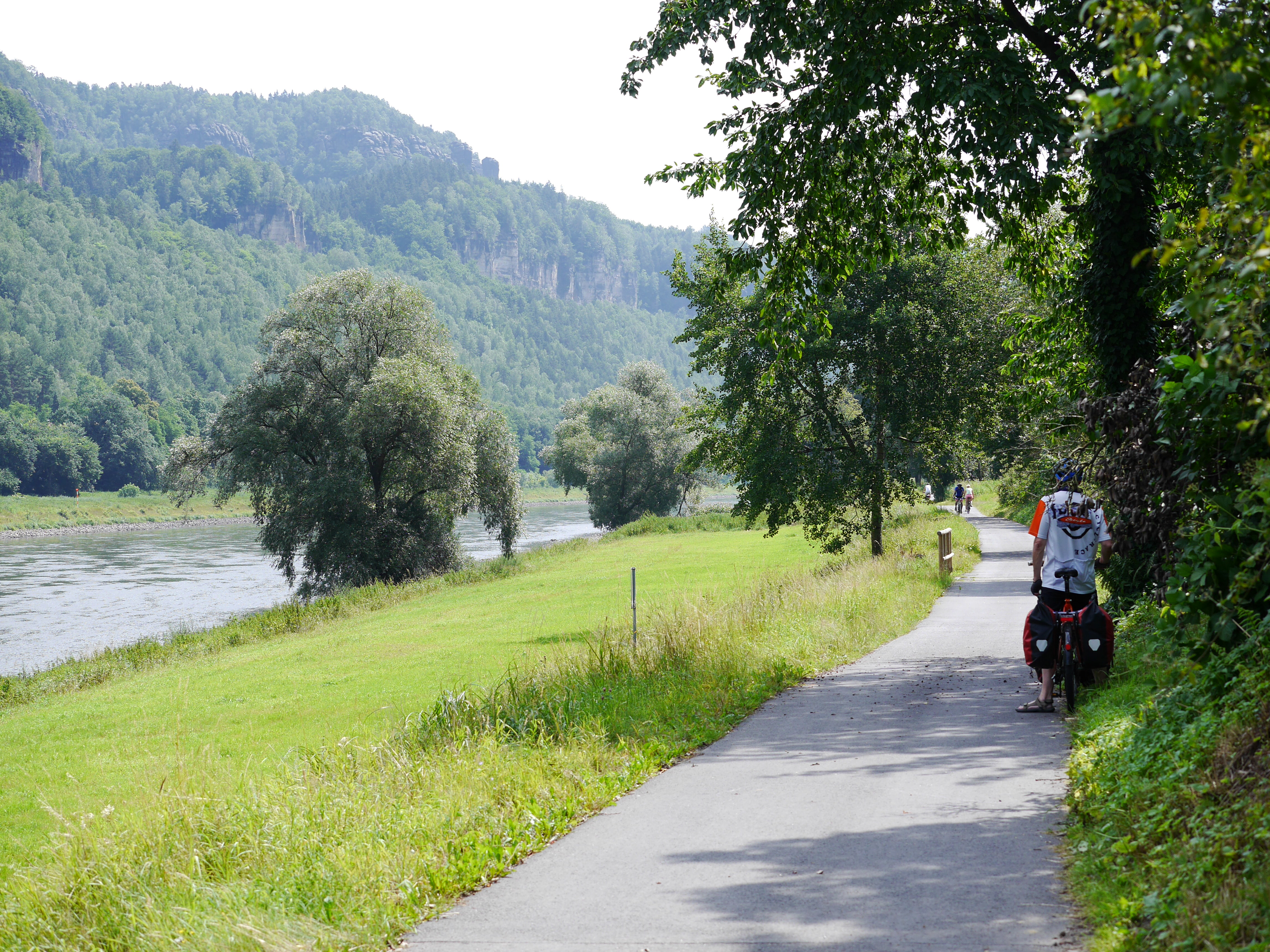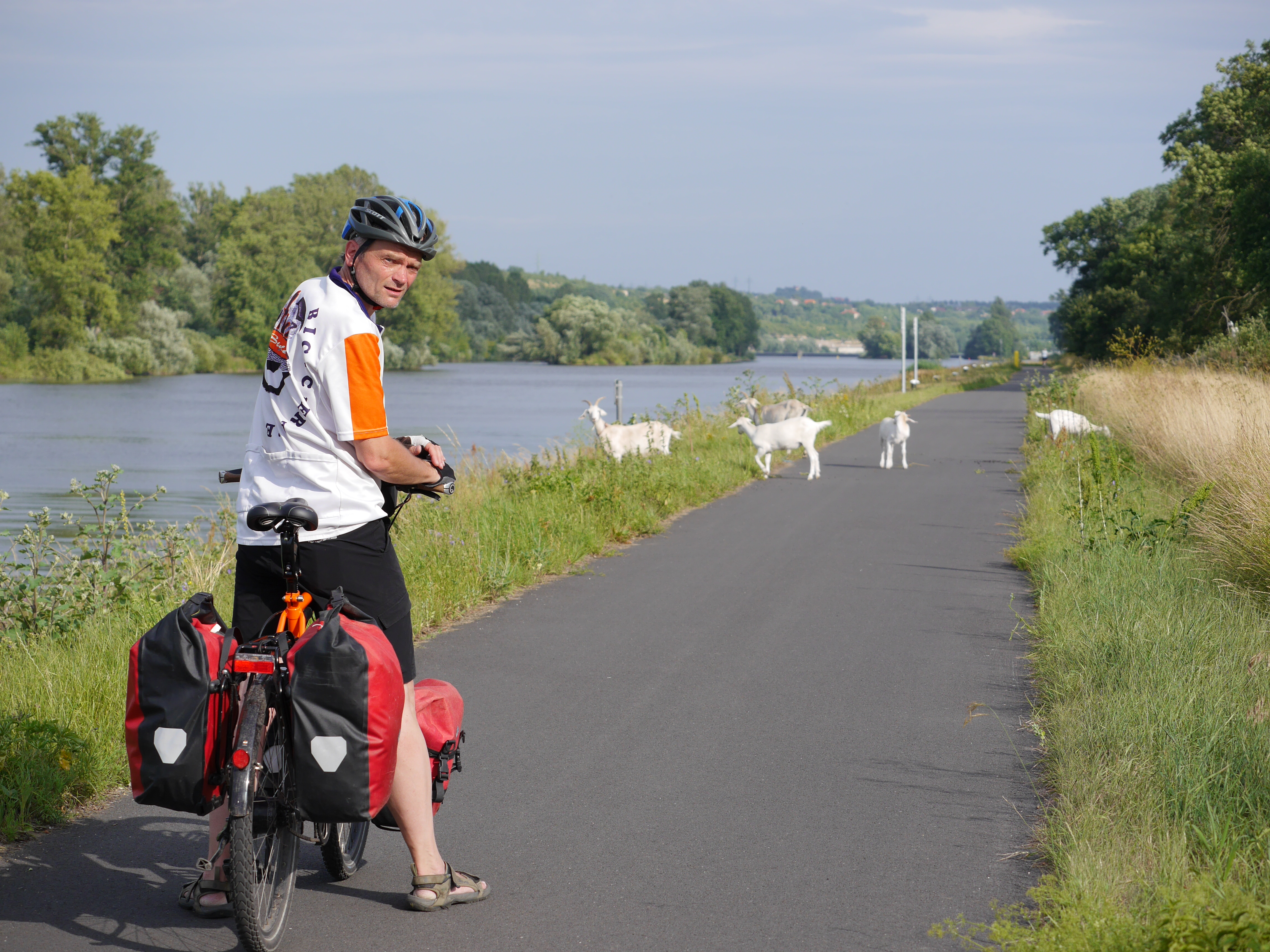 Von da geht es ca 15km mit starkem Gegenwind bis Decin. Gut, dass wir Finns selbstgebackenes Überlebensbrot dabei haben. Der Weg ist super. Unterwegs kreuzen wir die Grenze, aber bei der Grenzmarkierung gibt es ein Fotostau und wir fahren lieber weiter um endlich Decin zu erreichen.