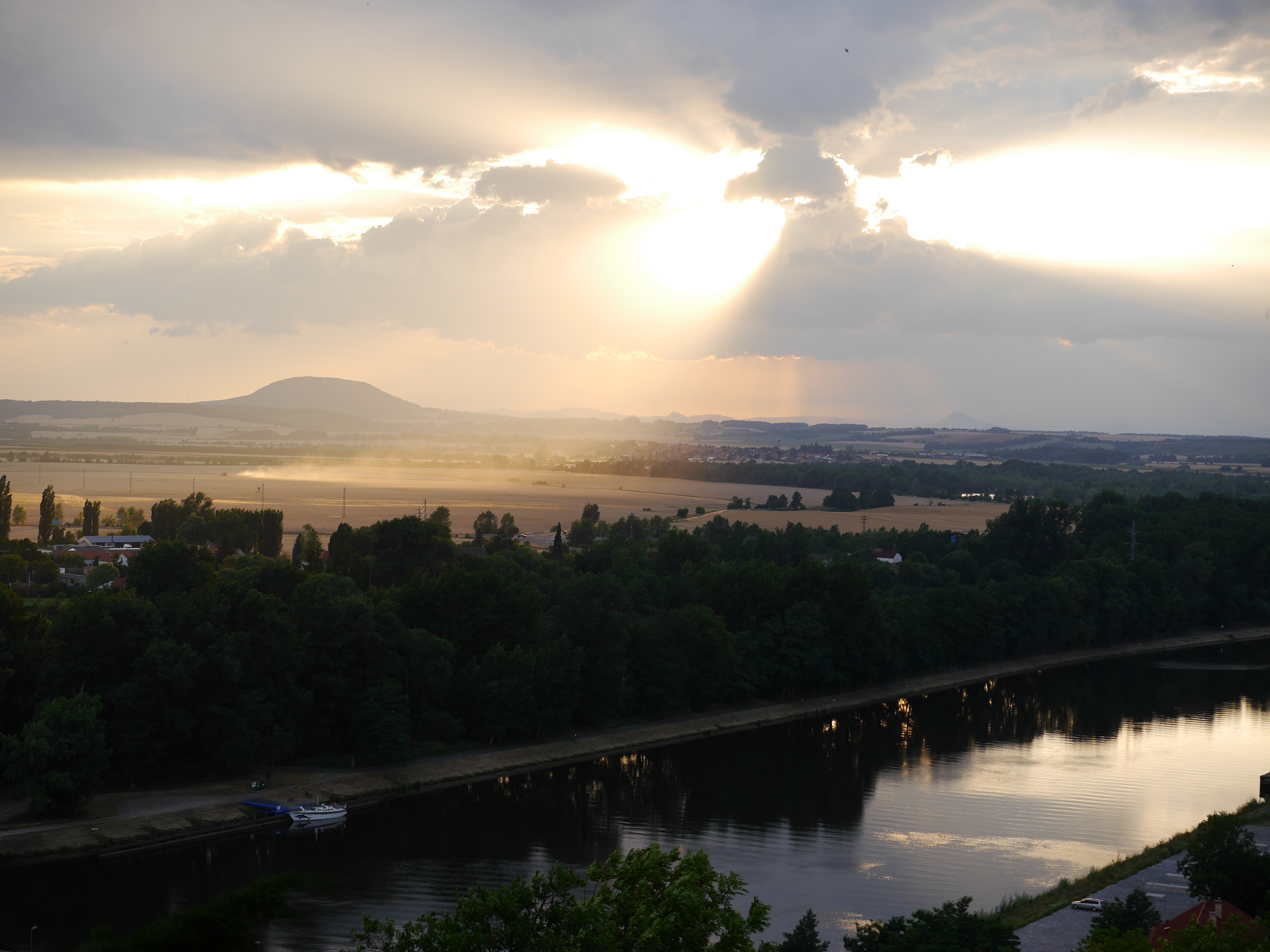 Nach dem Duschen gehen wir ins Zentrum… Sehr übersichtlich, wie unsere Herbergseltern schon sagten. Fantastischer Ausblick vom Schloss auf Elbe/Moldau/Kanal