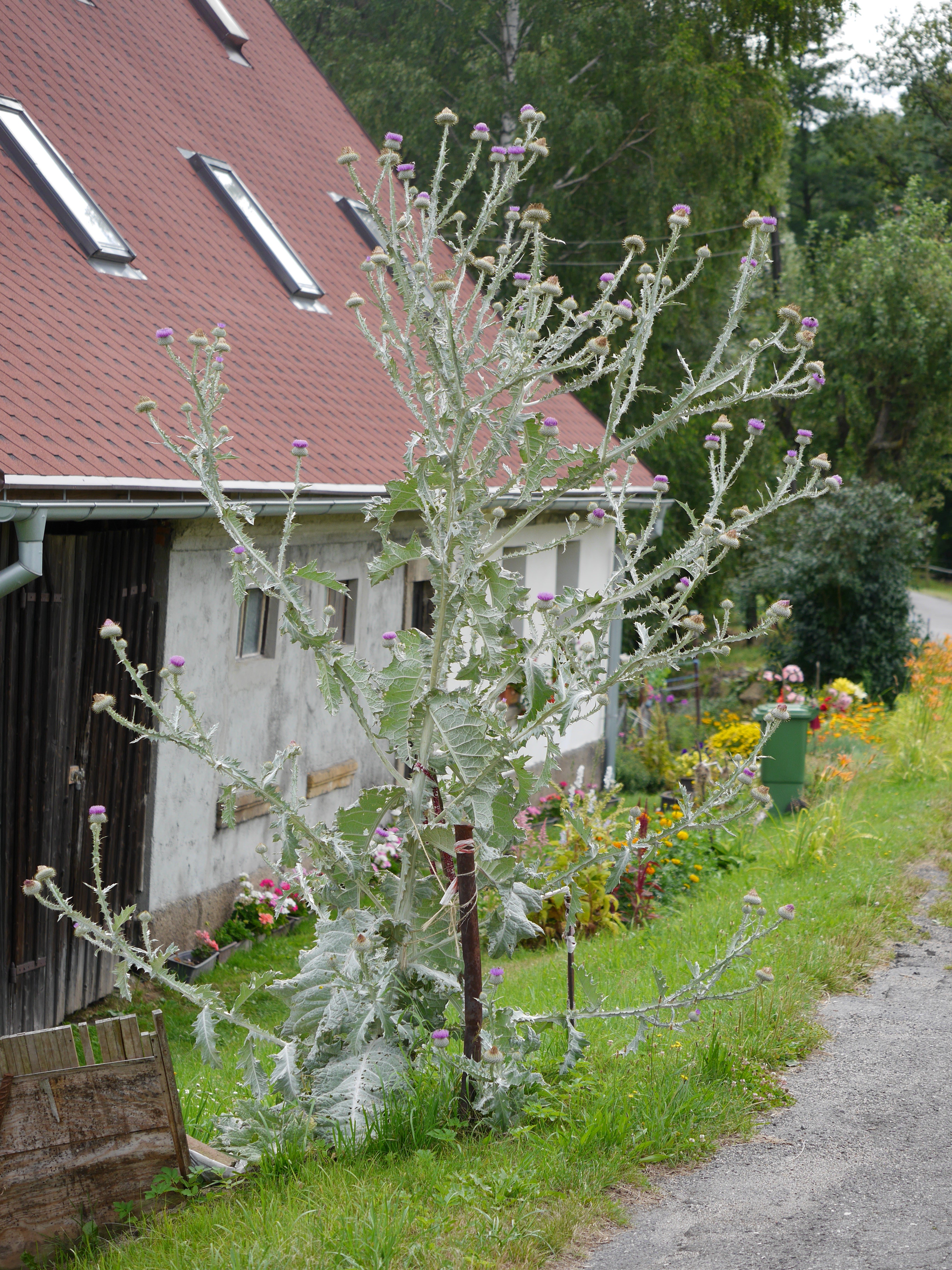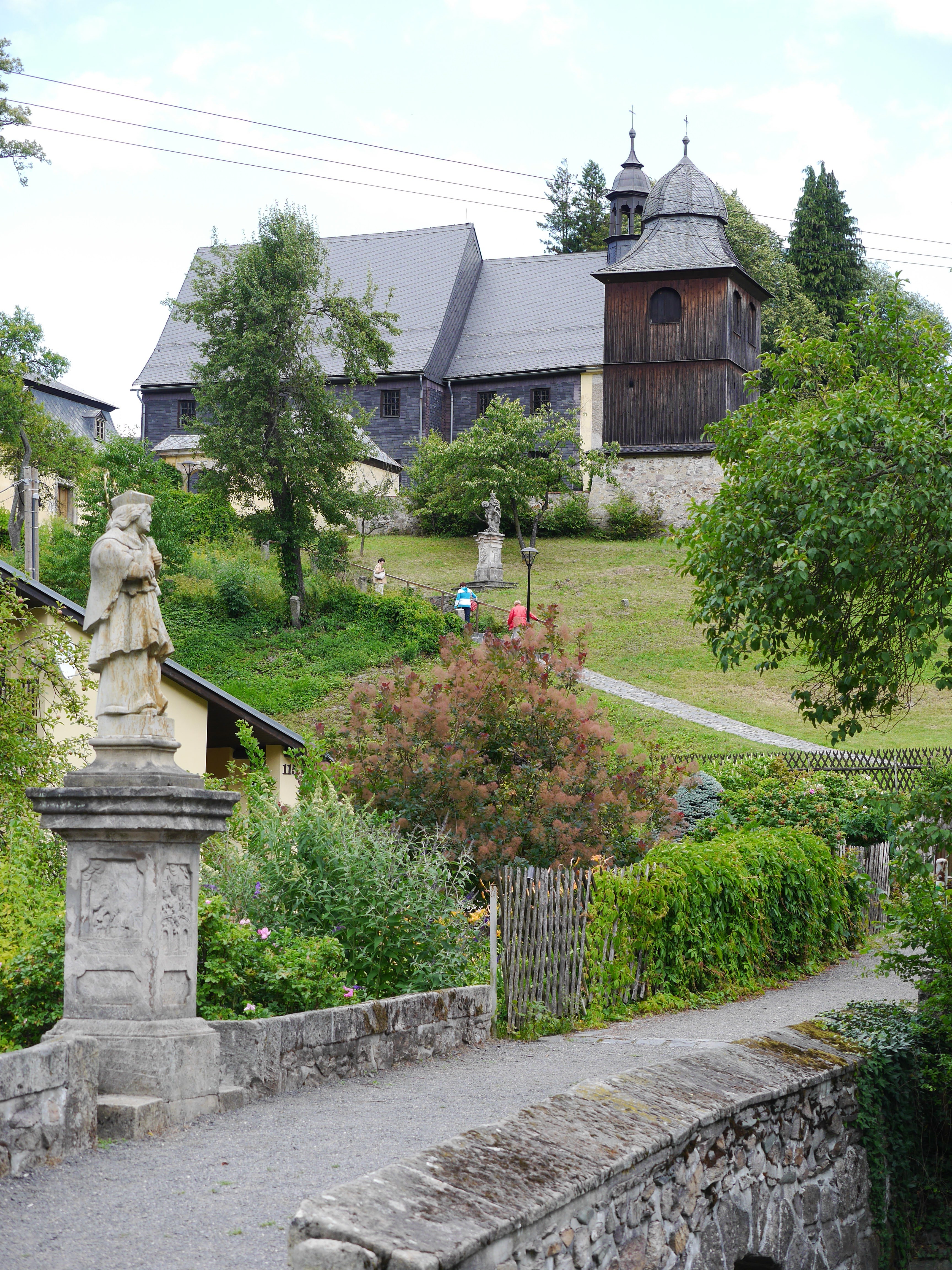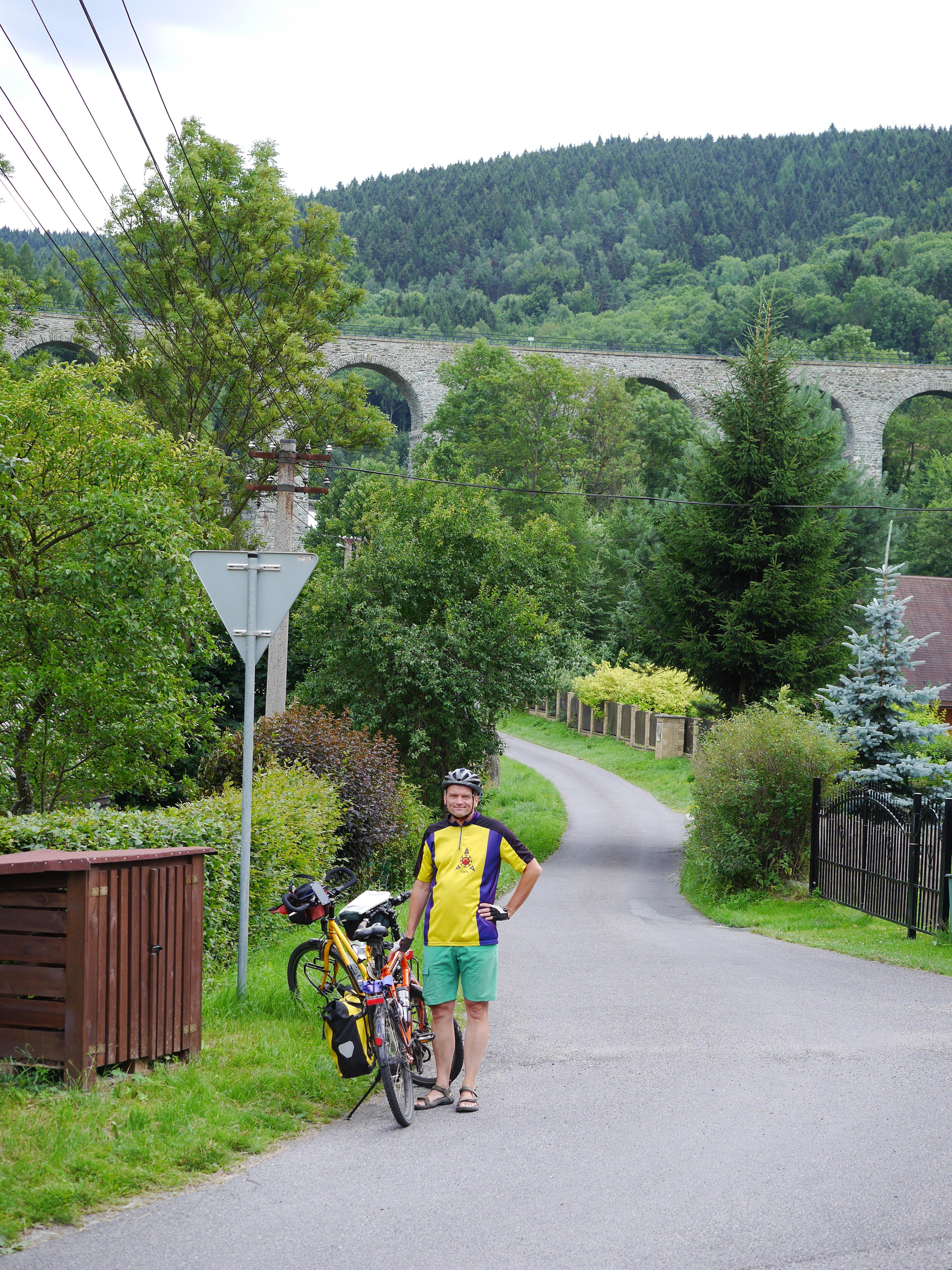 Nach einigen weiteren Kilometern kamen wir in das sehr malerische Dorf Krystofovo Udoil (Christophsgrund). Das Dorf schlängelt sich längs der Strasse etwa 100m hoch und ist voller traditioneller Holzhäuser mit schön geschmückten Giebeln. Dabei haben wir auch einige von den gefederten Einwohner getroffen.