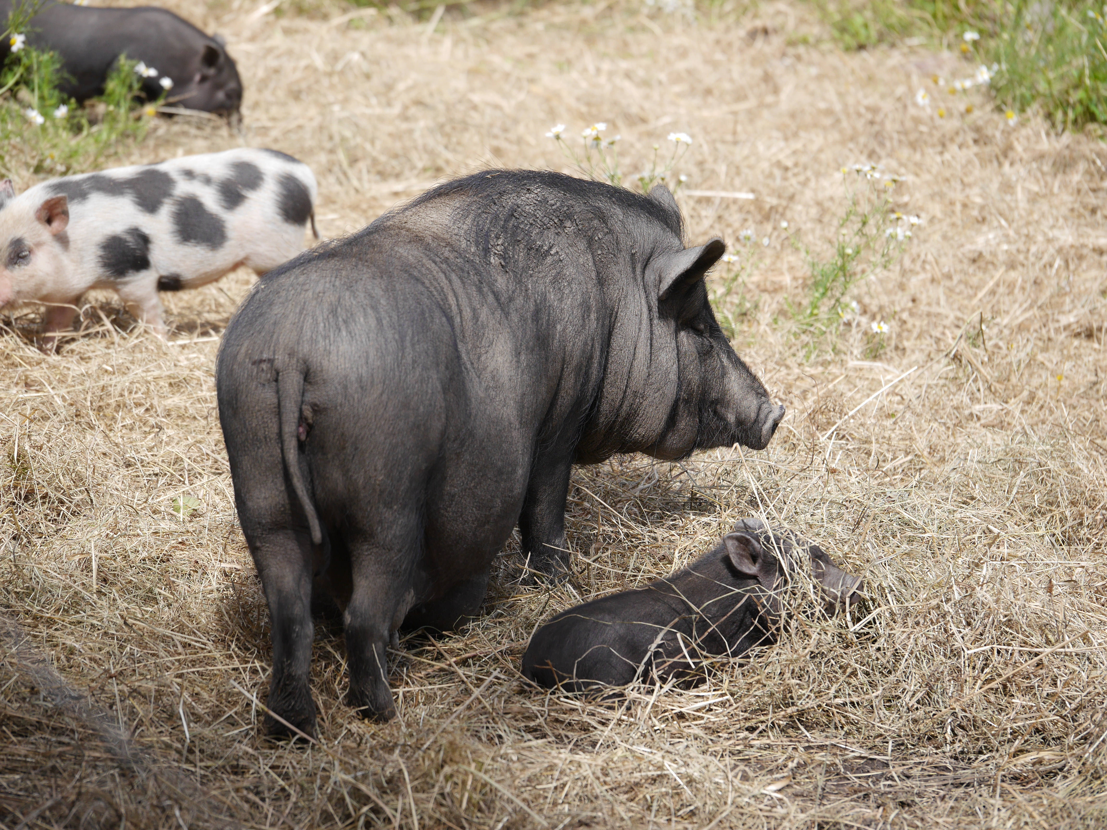 Nachdem wir durch einige Vororte gekommen sind, drehen wir auf eine lokale Fahrradroute ab. Sie führt uns von der lärmenden Autobahn weg und so langsam bergaufwärts. Aus den Stadt heraus kamen wir an einem Gehege mit Hängebauchschweinen vorbei. Hier gelang es uns fast, eine einen halben Meter lange Kreuzotter zu überfahren. Leider hatte sie für ein Fotosession keine Zeit.