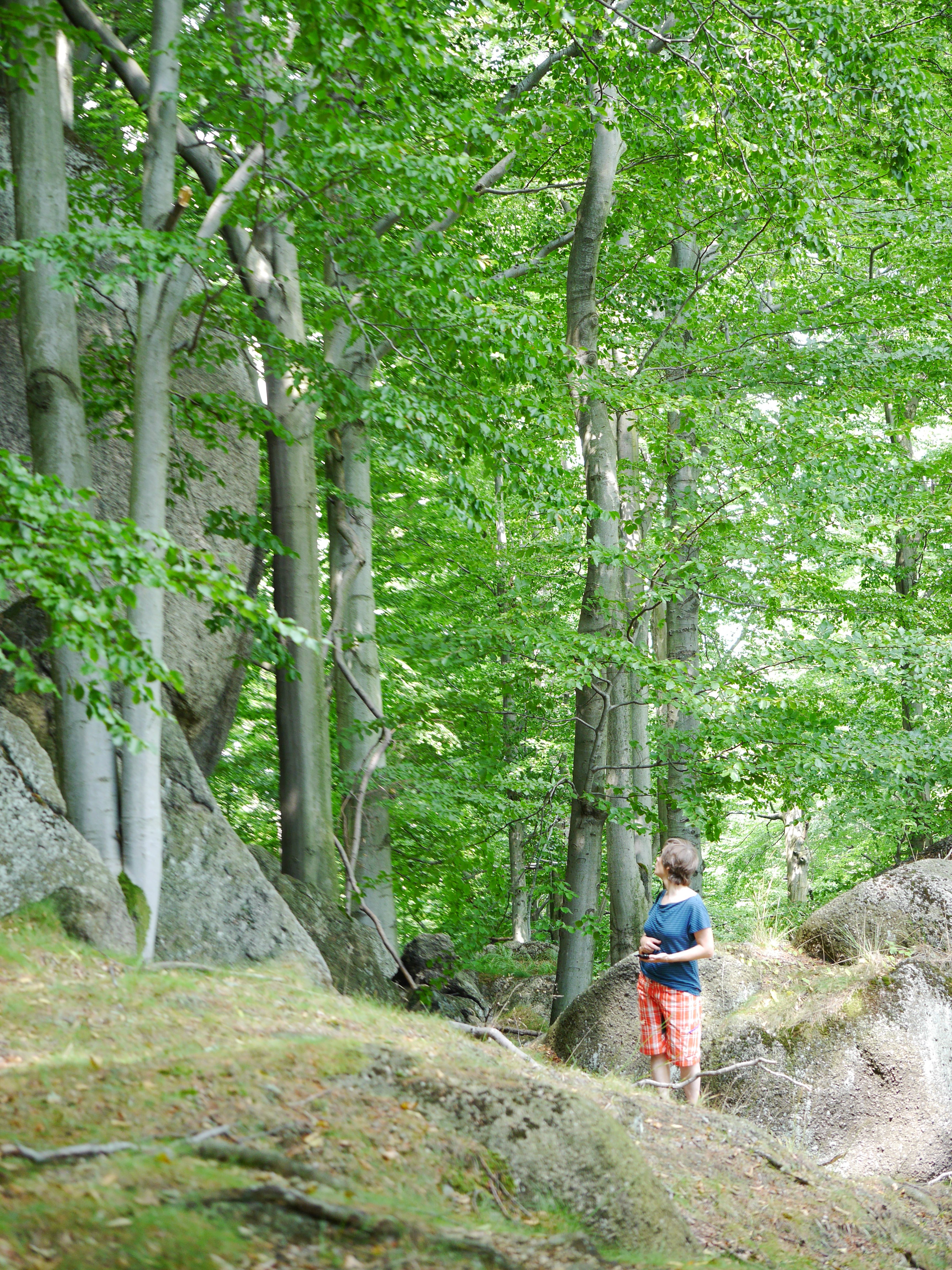 Als erstes sind wir an den Punkt zurückgefahren, wo wir die Fahrradroute 22 vorigen Samstag verlassen haben um nach Liberec zu fahren. Heute konnten wir ab da die Abfahrt Richtung Westen der Route 22 genießen – eine glatt asphaltierte Fahrradstrasse durch den Wald, vorbei an Felsformationen auf der rechten und ab und an eine Aussicht zur Linken Seite. Die Route ist schon unschlagbar 😀