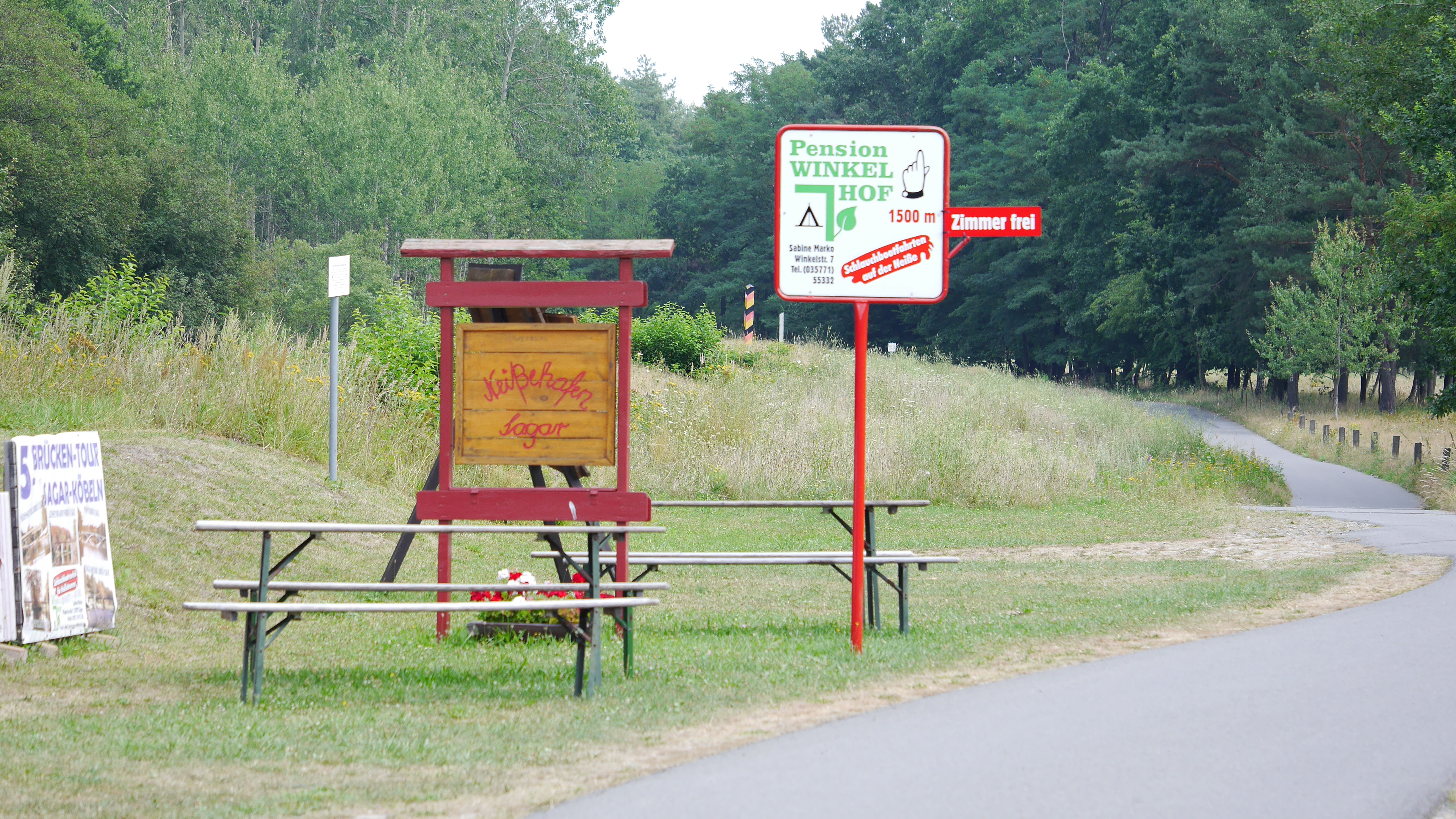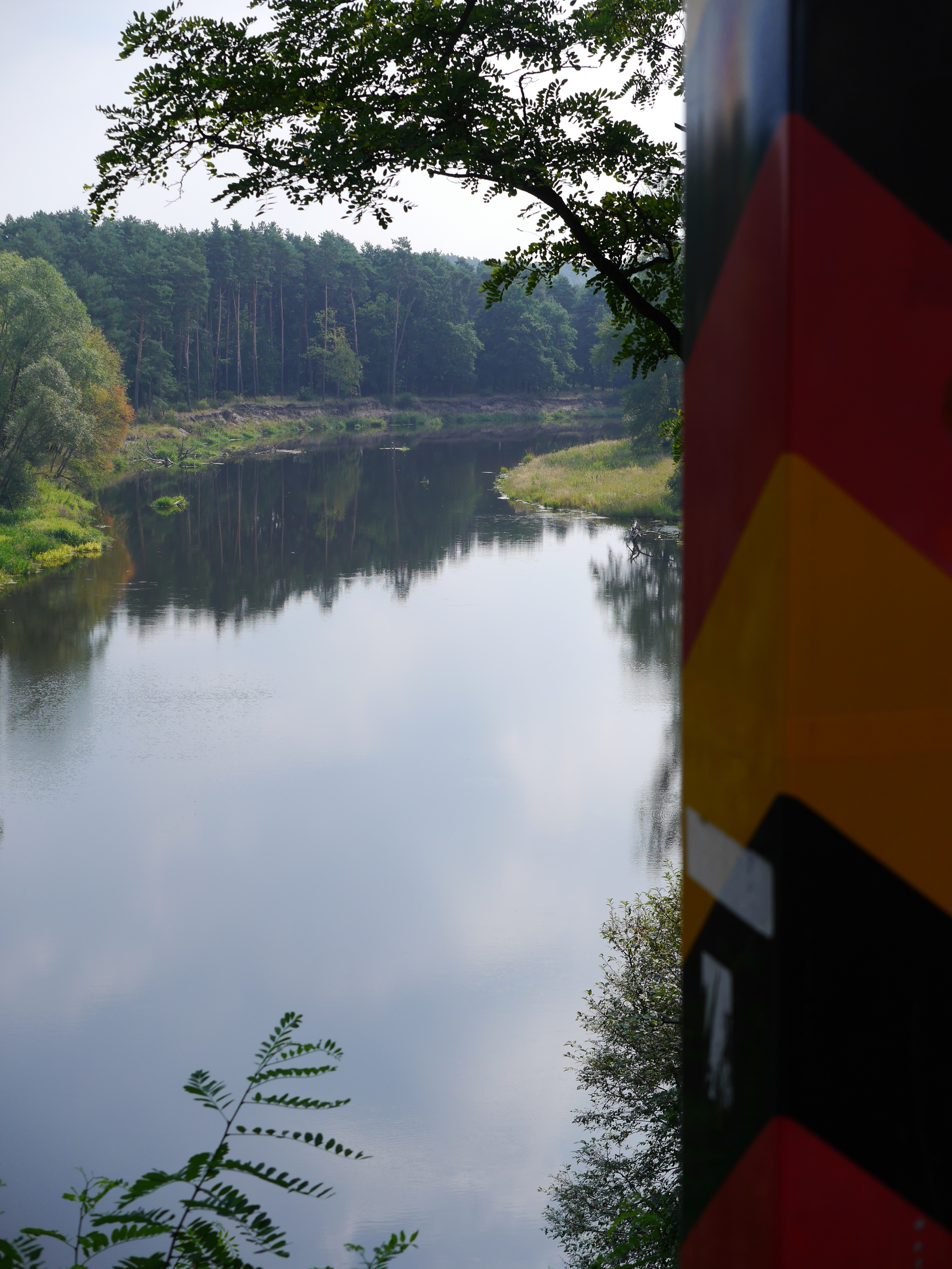 Also sind wir entspannt längs der Neiße gefahren, nur unterbrochen durch Fotosessions wenn das Landschaft richtig schön war. Zu Mittag haben wir eine Kleinigkeit in einer Gaststätte gegessen, dafür reichlich Schole getrunken. Die weit über 30 Grad Wärme war immer anstrengend, sobald man angehalten ist.