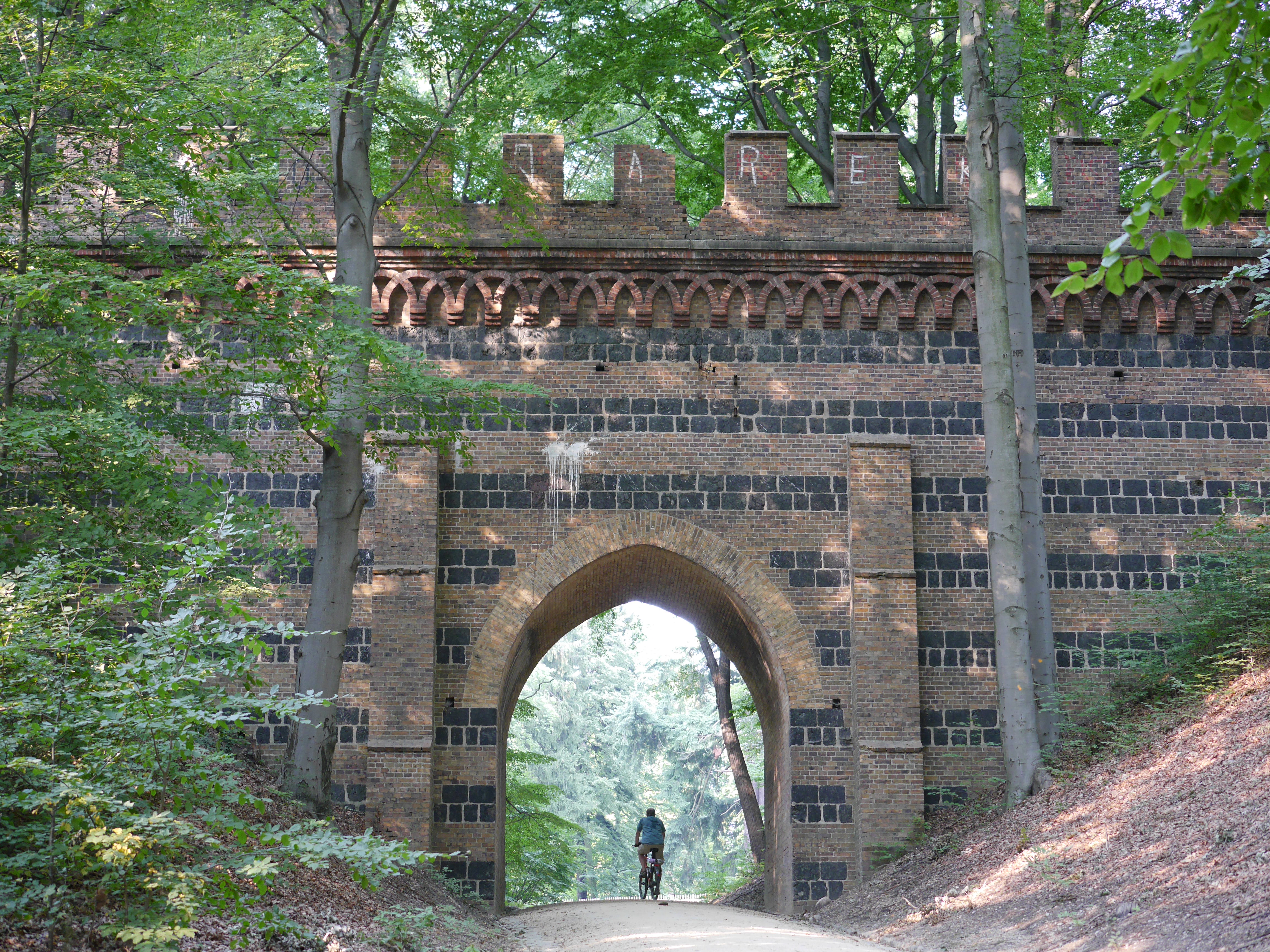 Der Park erstreckt sich über 750 Hektar, wovon sich 2/3 in Polen befindet. Es gibt mehr als 70km Wege und gekrönt wird es mir jeder Menge Brücken, ein neues und ein altes Schloss, eine künstliche Kirchenruine und einen gebauten Wasserfall 😀