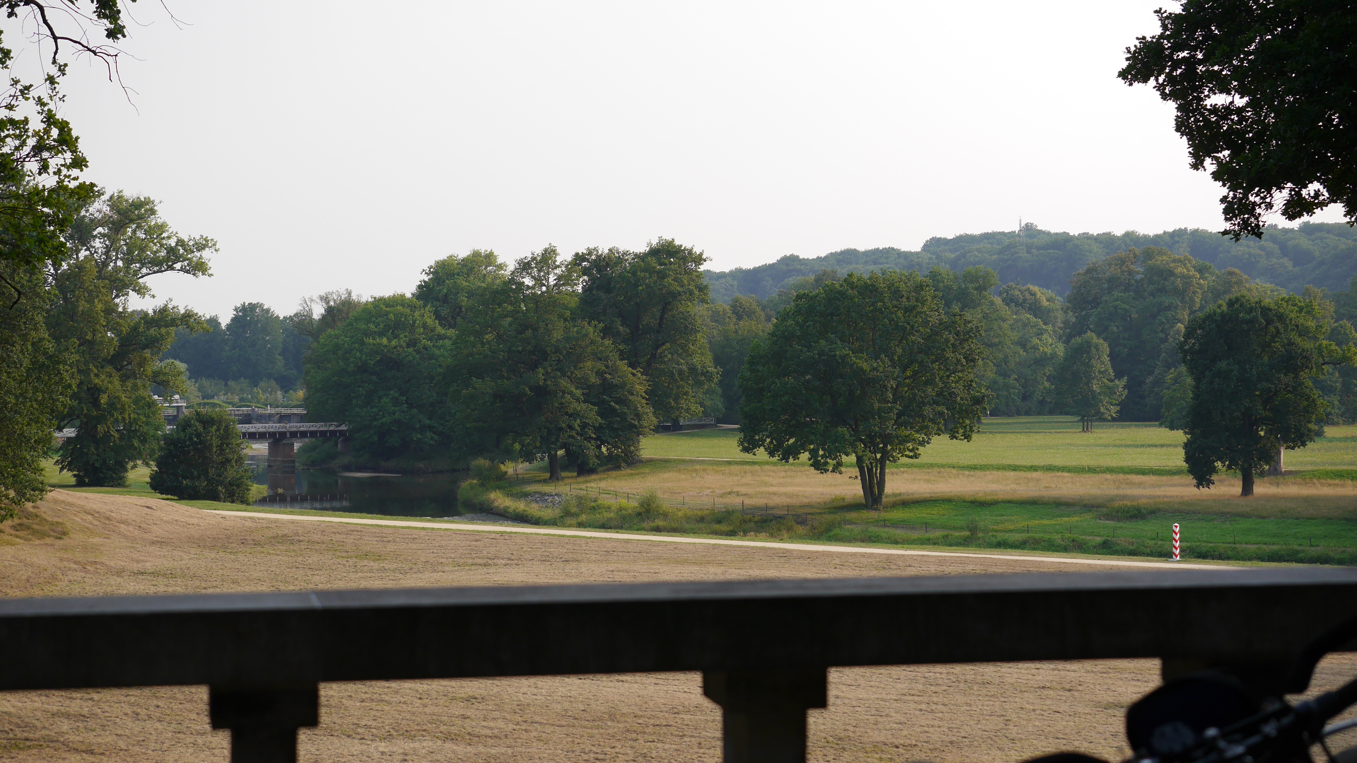 Das Hauptziel des Tages war Bad Muskau etwa 35 bis 40km entfernt. Nachdem wir uns vorsorglich bei einem Getränkemarkt einige Liter Wasser besorgt haben, sind wir den Neiße Radweg entlang geradelt.
