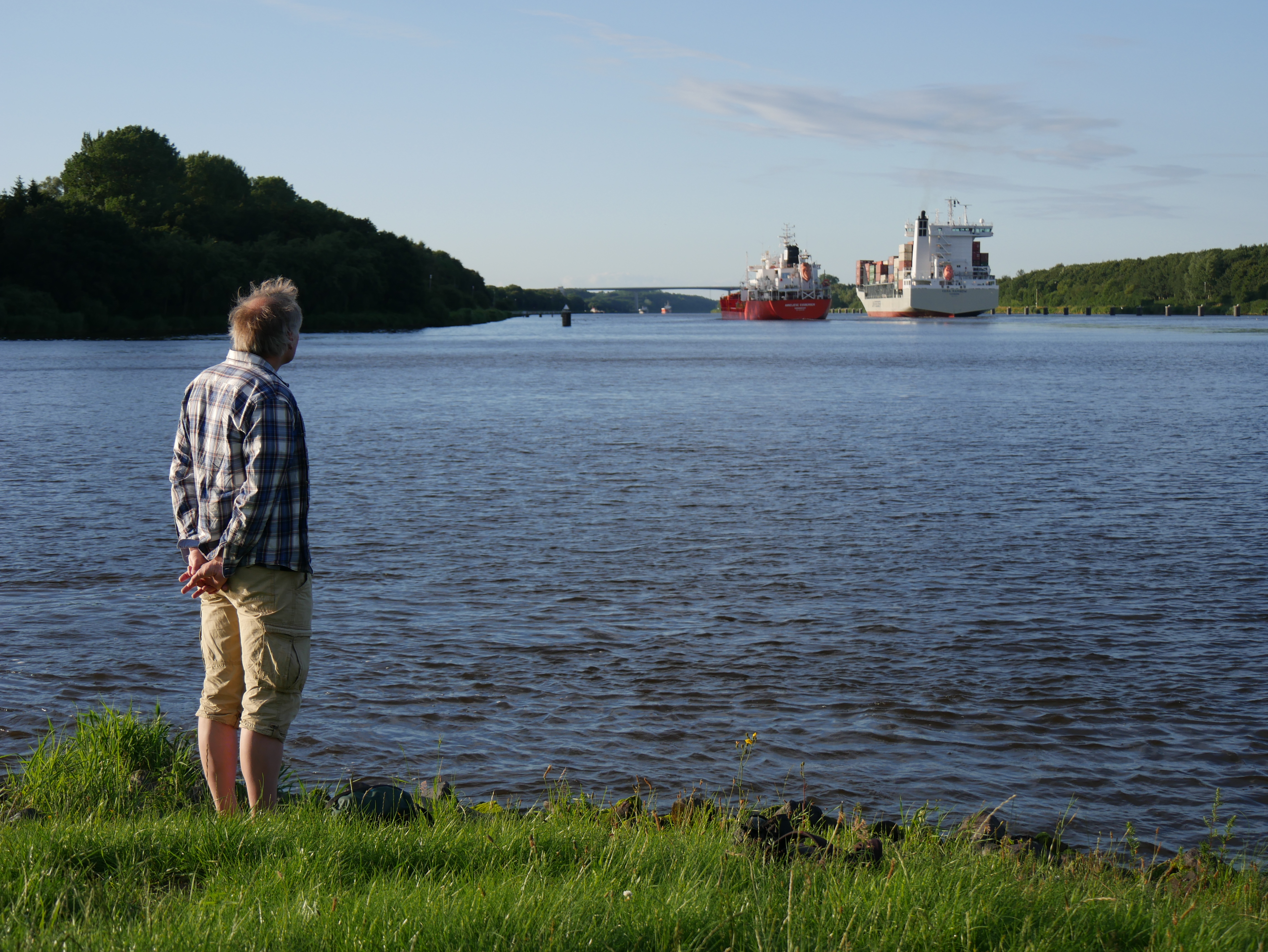 Als wir ausstiegen, hatte der Regen aufgehört. Ab Rendsburg gab es eine super Ausschilderung von Fahrrad-Routen. Für uns ging es durch den Tunnel auf die andere Kanalseite, dann entlang des Wirtschaftsweges den Kanal entlang. Er ließ sich super befahren … ganz im Gegensatz zur Strecke in und um Kiel. Nach wenigen Kilometern lud uns das Cafe Alte Schleuse zum Verweilen ein.